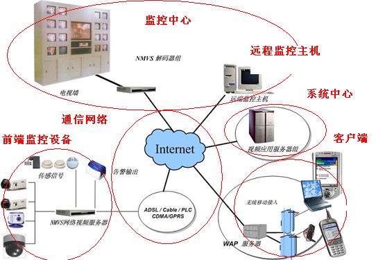 視頻監(jiān)控系統(tǒng)由高清晰彩色攝像機、鏡頭、防護罩、云臺、解碼器、報警器等前端設(shè)備和后臺監(jiān)控主機組成。通過有線或無線傳輸可以構(gòu)建分布式跨地區(qū)視頻監(jiān)控系統(tǒng)。